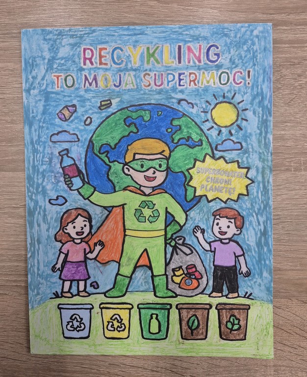 Zadaniem uczestników było przygotowanie plakatu, który w ciekawy i oryginalny sposób zachęcałby do segregowania odpadów i dbania o środowisko.