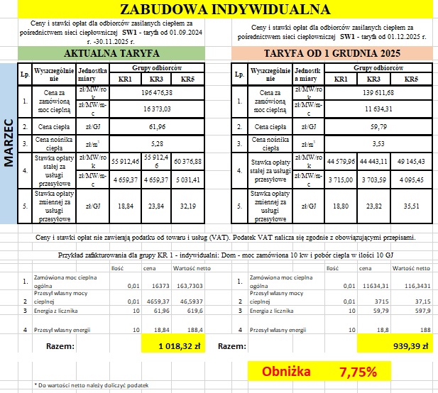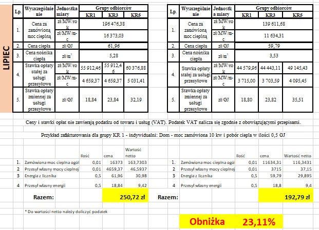 Stawki dla odbiorców ciepła z Ciepłowni Lab-Tech Sp. z o.o. (była ciepłownia ZMG FAMEG