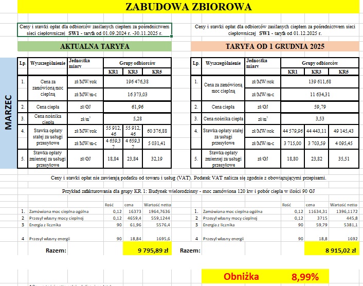 Poniżej dla porównania przedstawiamy także stawki taryf: obowiązującej i nowej, która będzie obowiązywała od 1 grudnia 2024r.