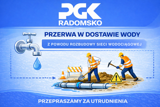 Zakład Wodociągów i Kanalizacji Przedsiębiorstwa Gospodarki Komunalnej Sp. z o.o. informuje, że w poniedziałek 13 kwietnia 2026 r. w godz. 8-12 z powodu rozbudowy sieci wodociągowej mogą wystąpić braki w dostawie wody w ulicy Traktorowej od skrzyżowania z ul. Narutowicza do skrzyżowania z ul. Hubala.