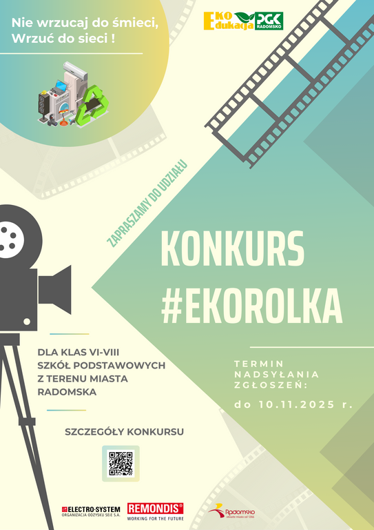 Stwórz krótkie wideo w formie rolki – takiej jak w social mediach. Dynamiczne, pomysłowe i pełne energii! Twoja praca powinna pokazywać, jak prawidłowo pozbywać się elektroodpadów i dlaczego warto troszczyć się o naszą planetę.